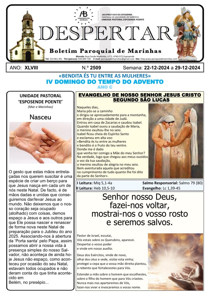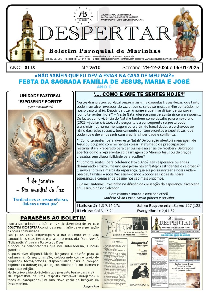 ≈ Comentários Desativados em Boletim Despertar n.º 2510 de 29.12.2024 a 05.01.2025