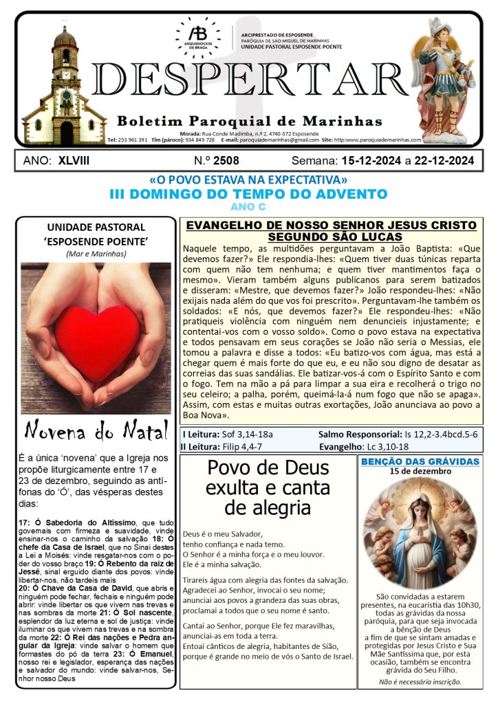 ≈ Comentários Desativados em Boletim Despertar n.º 2508 de 15.12.2024 a 22.12.2024