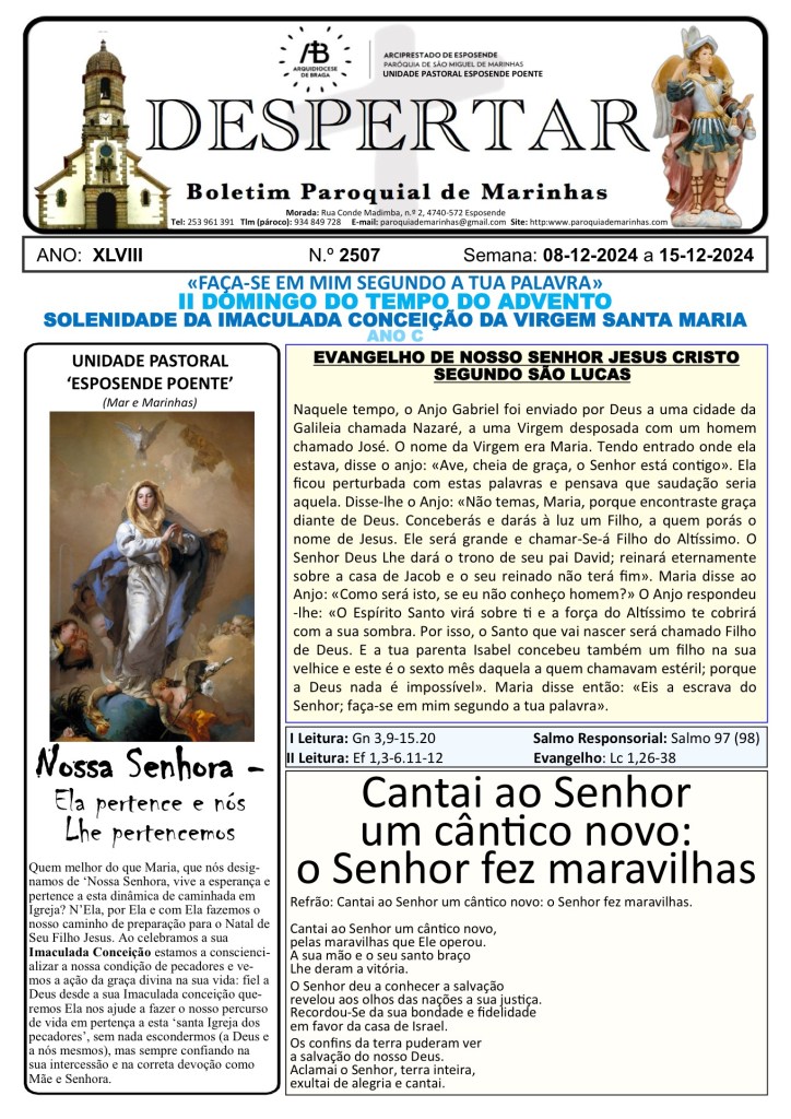 ≈ Comentários Desativados em Boletim Despertar n.º 2507 de 08.12.2024 a 15.12.2024