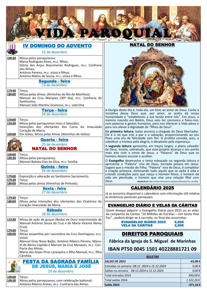 ≈ Comentários Desativados em Boletim Despertar n.º 2509 de 22.12.2024 a 29.12.2024