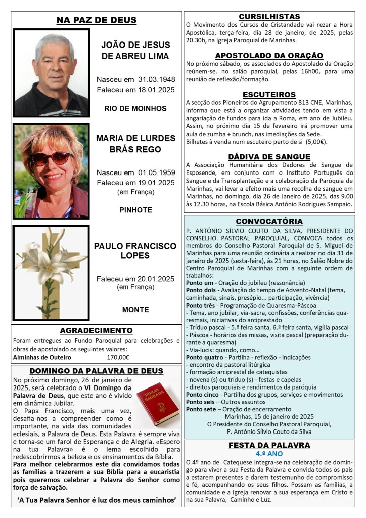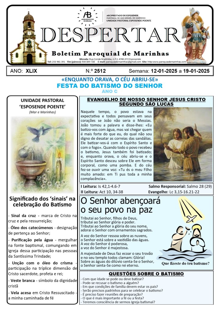 ≈ Comentários Desativados em Boletim Despertar n.º 2512 de 12.01.2025 a 19.01.2025
