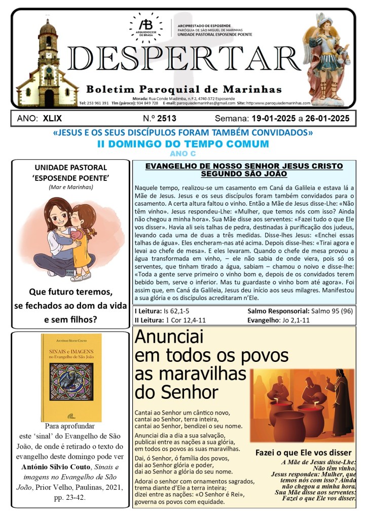 ≈ Comentários Desativados em Boletim Despertar n.º 2513 de 19.01.2025 a 26.01.2025