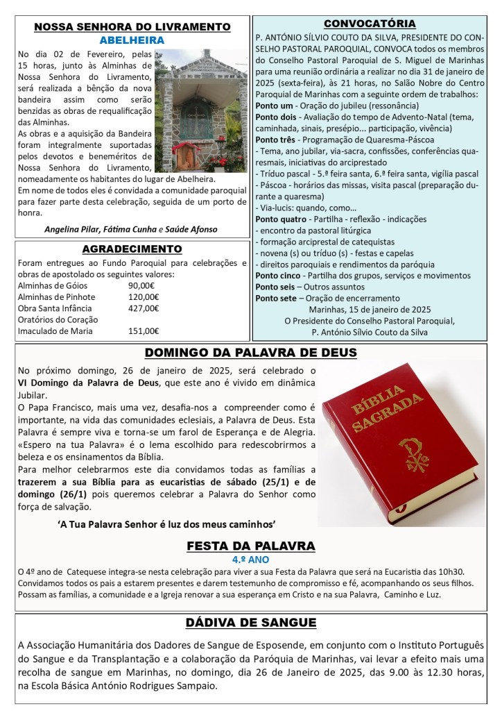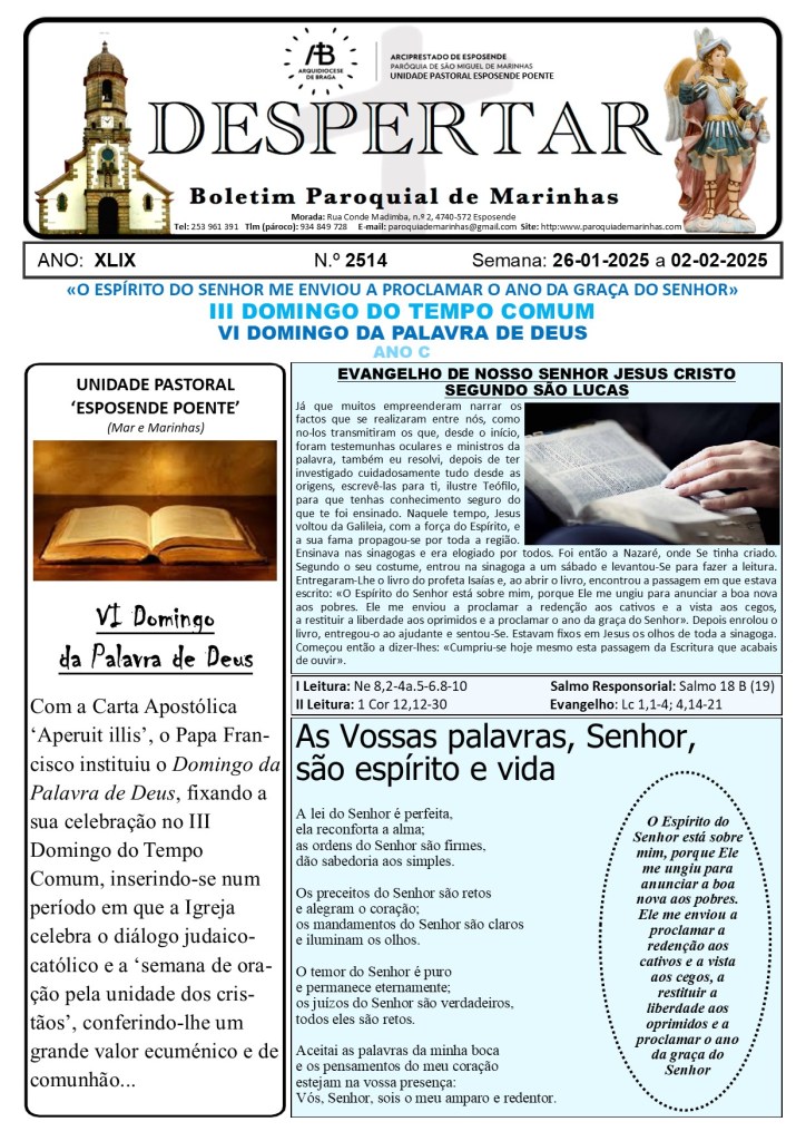 ≈ Comentários Desativados em Boletim Despertar n.º 2514 de 26.01.2025 a 02.02.2025