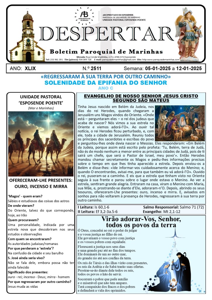 ≈ Comentários Desativados em Boletim Despertar n.º 2511 de 05.01.2025 a 12.01.2025
