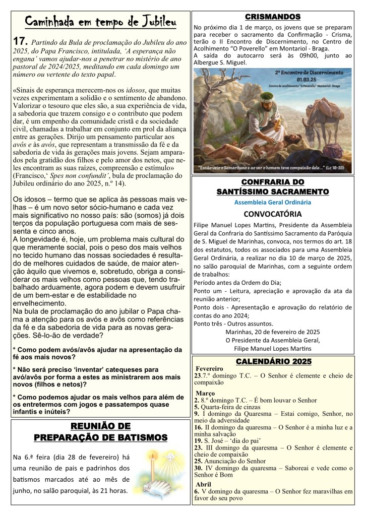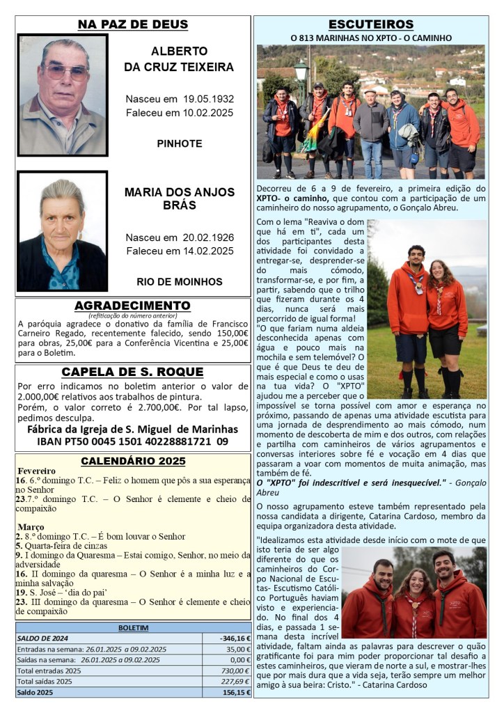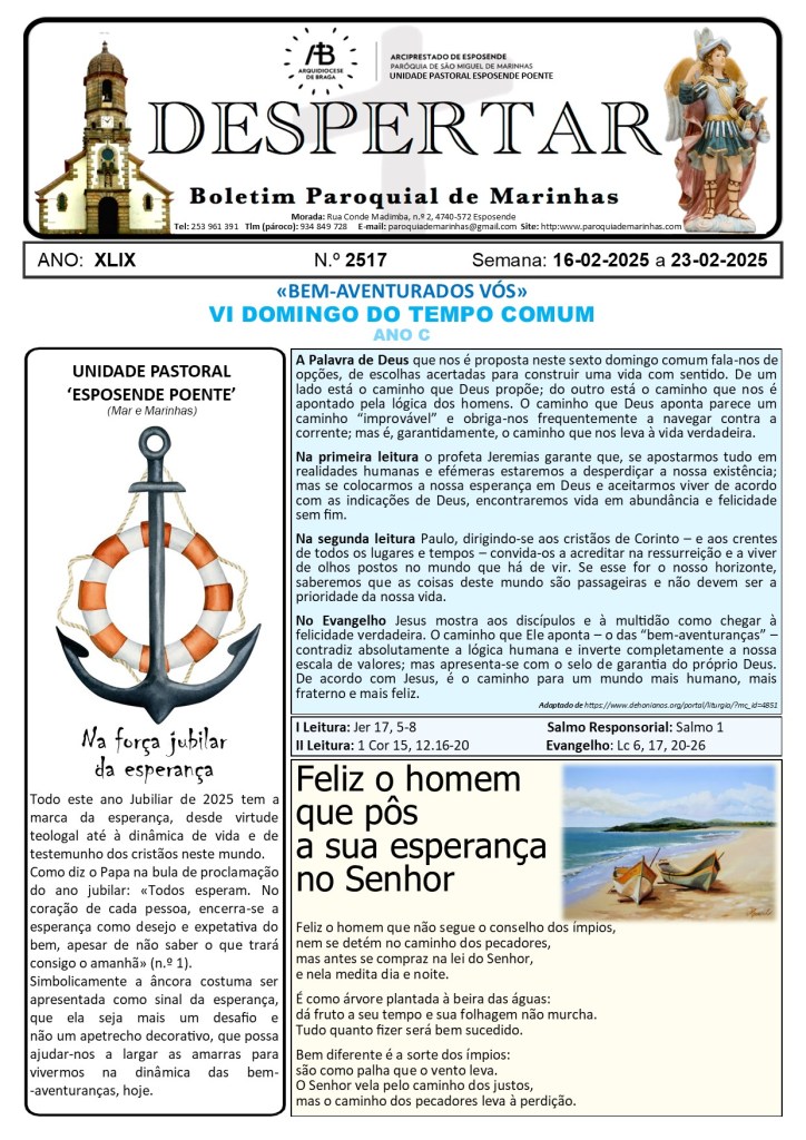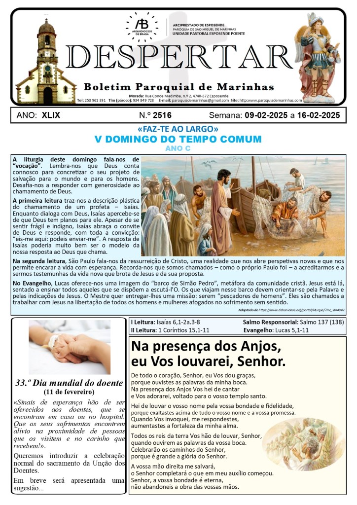 ≈ Comentários Desativados em Boletim Despertar n.º 2516 de 09.02.2025 a 16.02.2025