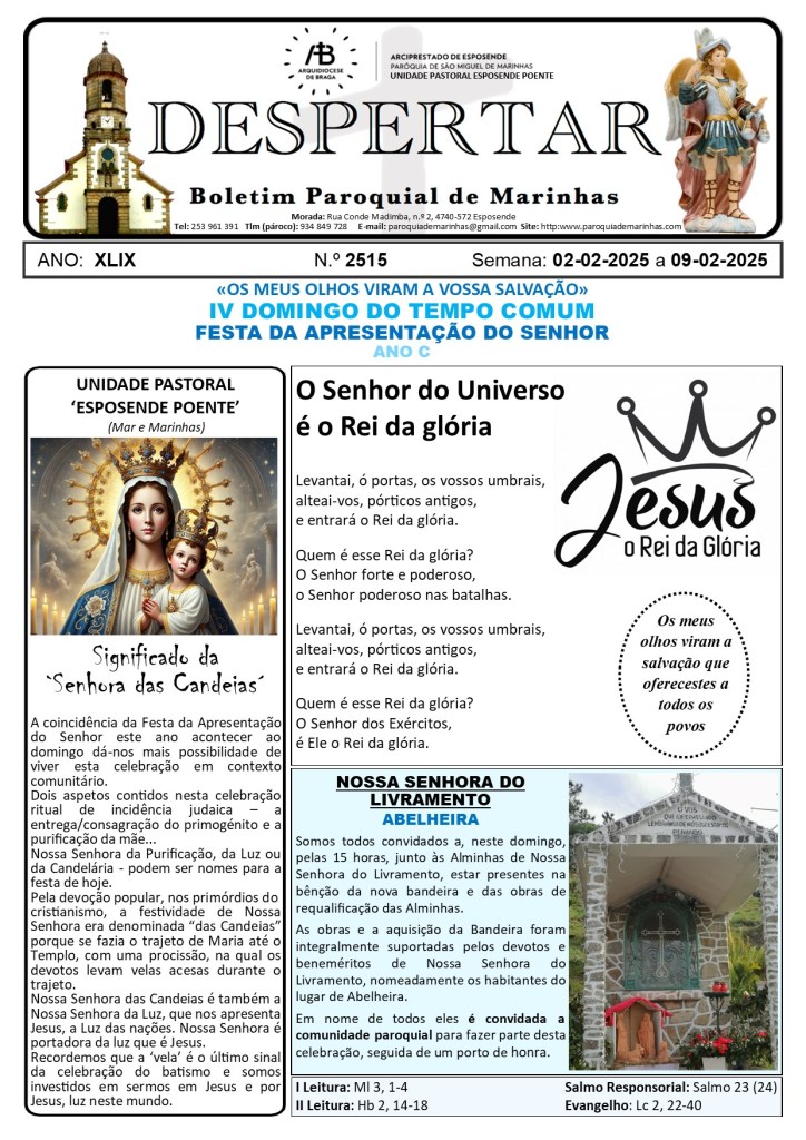 ≈ Comentários Desativados em Boletim Despertar n.º 2515 de 02.02.2025 a 09.02.2025