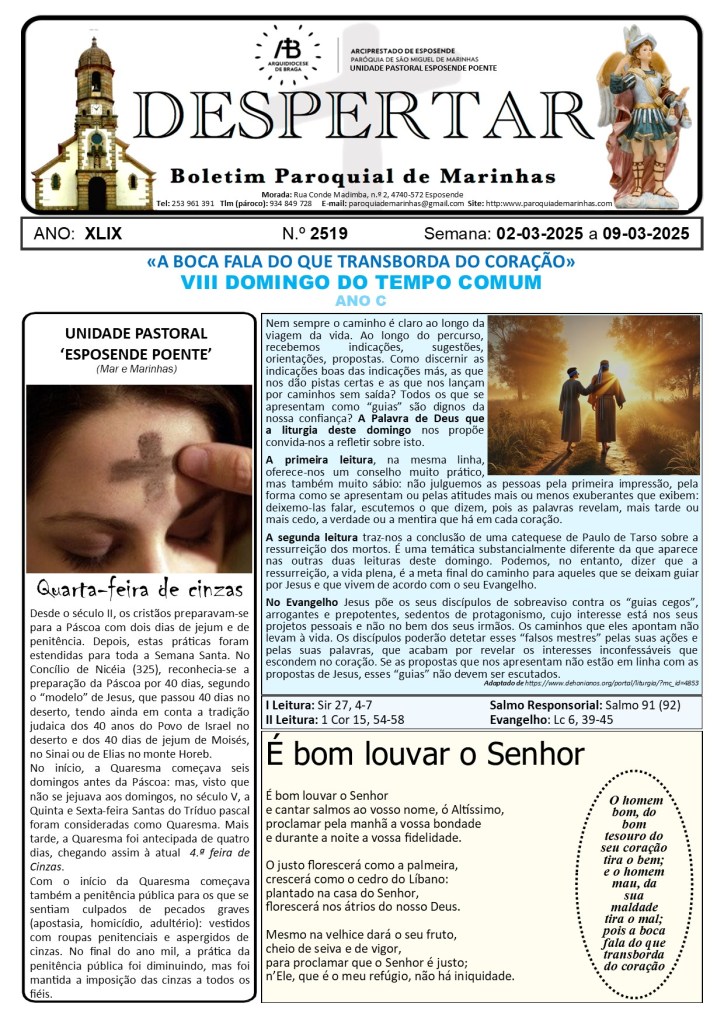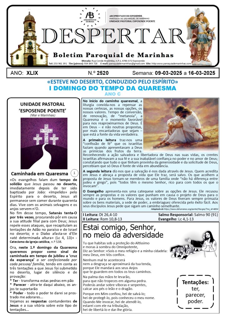 ≈ Comentários Desativados em Boletim Despertar n.º 2520 de 09.03.2025 a 16.03.2025