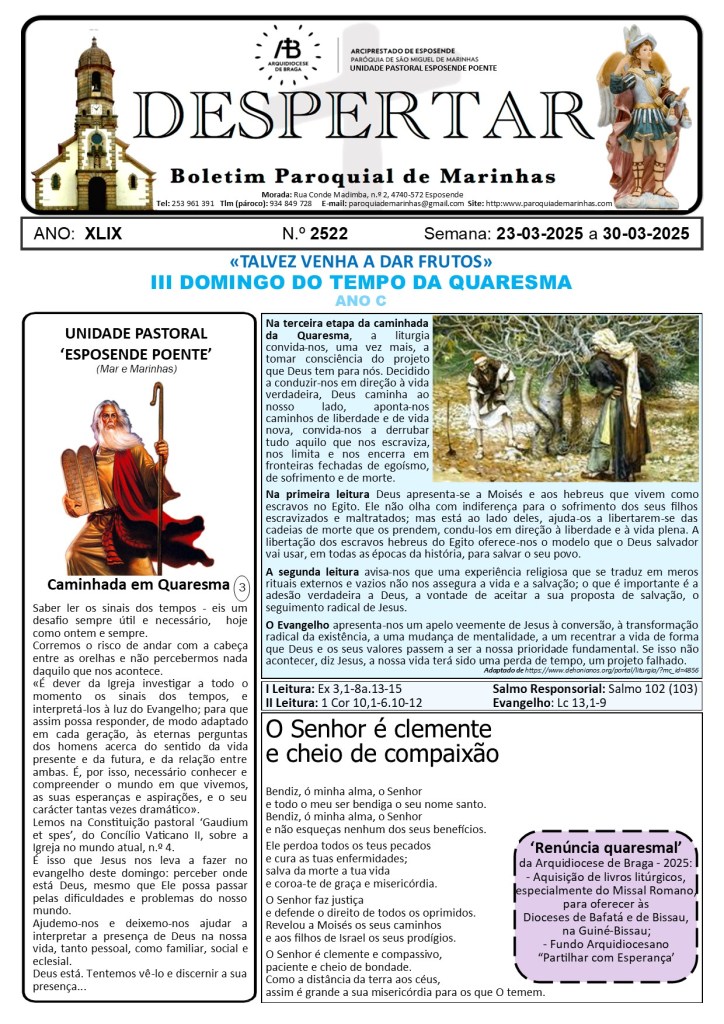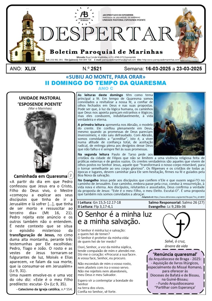 ≈ Comentários Desativados em Boletim Despertar n.º 2521 de 16.03.2025 a 23.03.2025