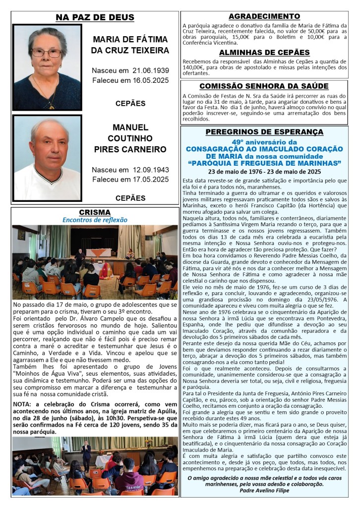 ≈ Comentários Desativados em Boletim Despertar n.º 2528 de 04.05.2025 a 11.05.2025