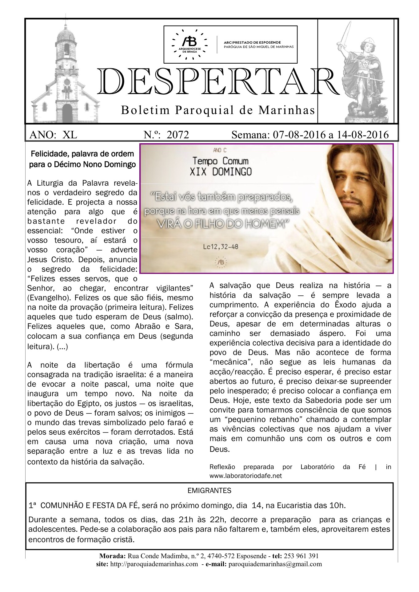 Boletim DESPERTAR 07.08.2016 a 14.08.2016