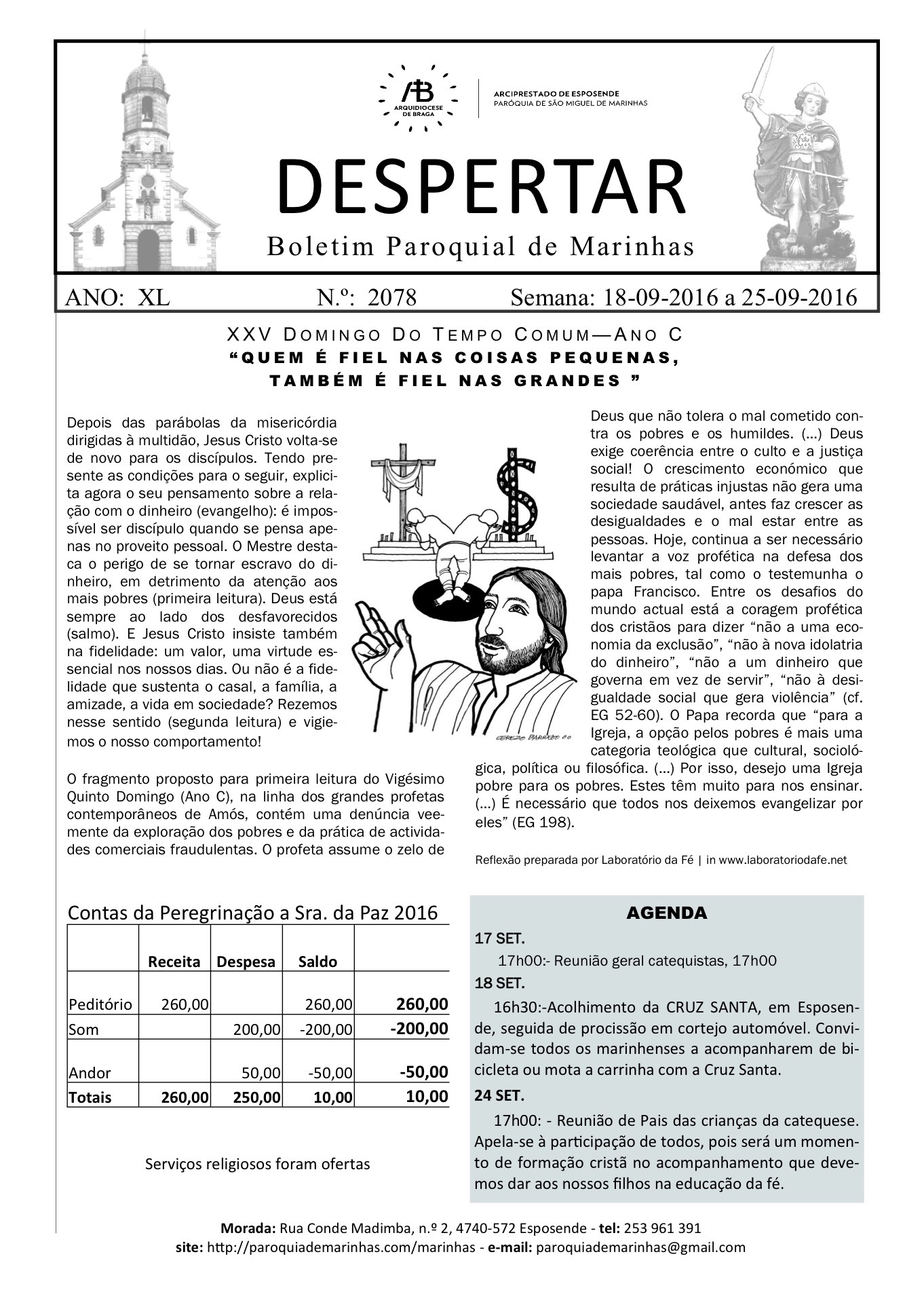 Boletim DESPERTAR 18.09.2016 a 25.09.2016