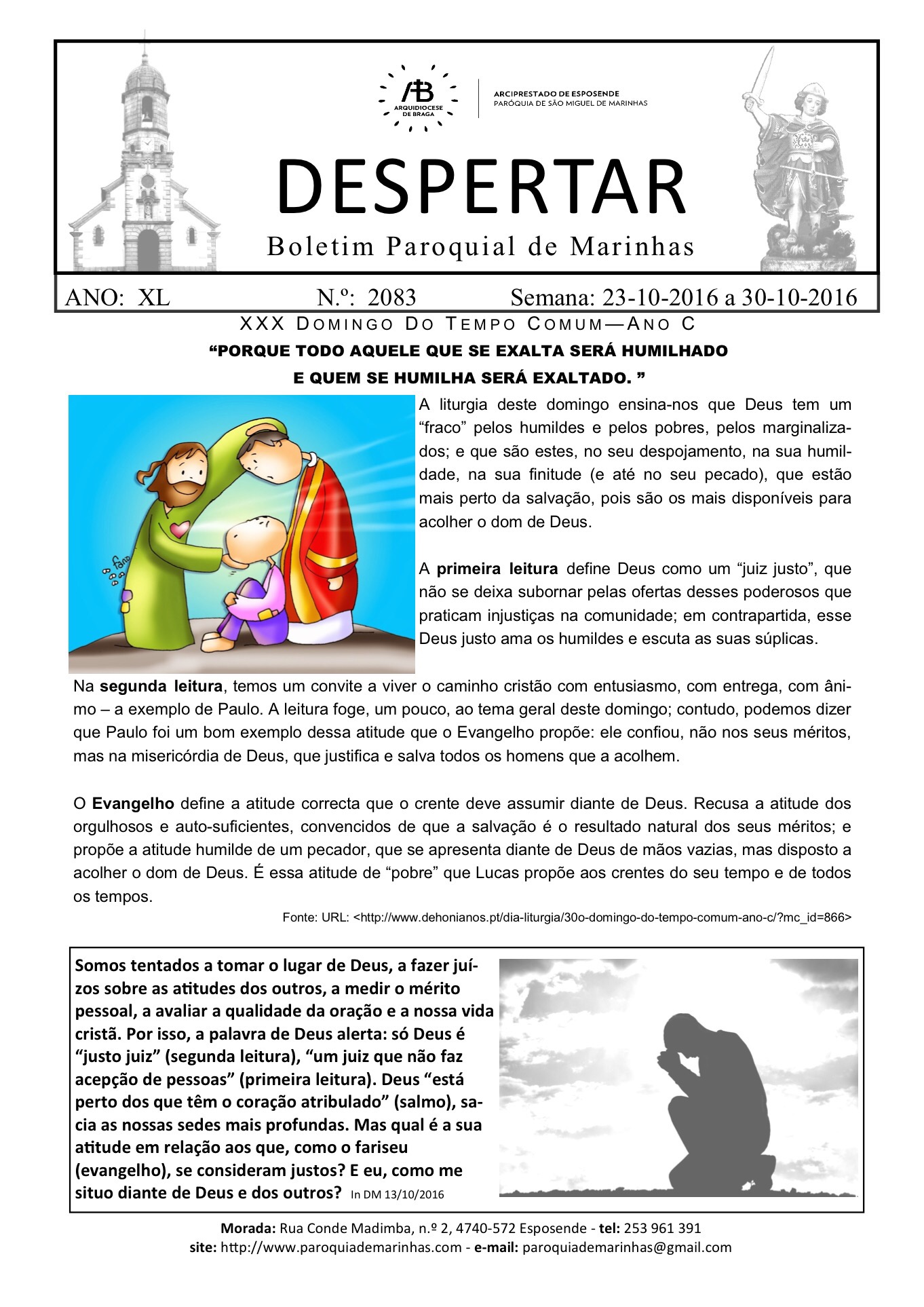 Boletim DESPERTAR 23.10.2016 a 30.10.2016