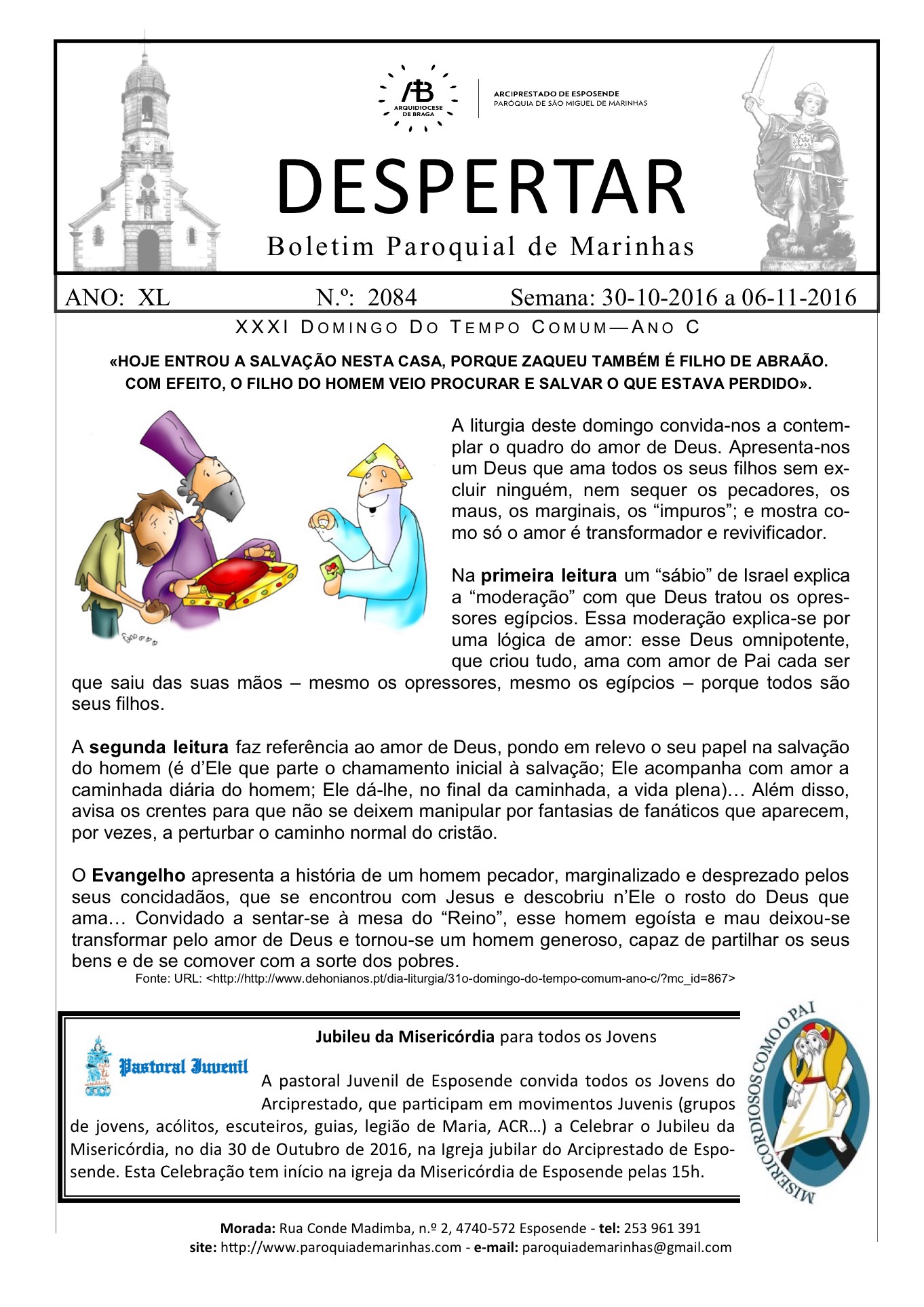 Boletim DESPERTAR 30.10.2016 a 06.11.2016