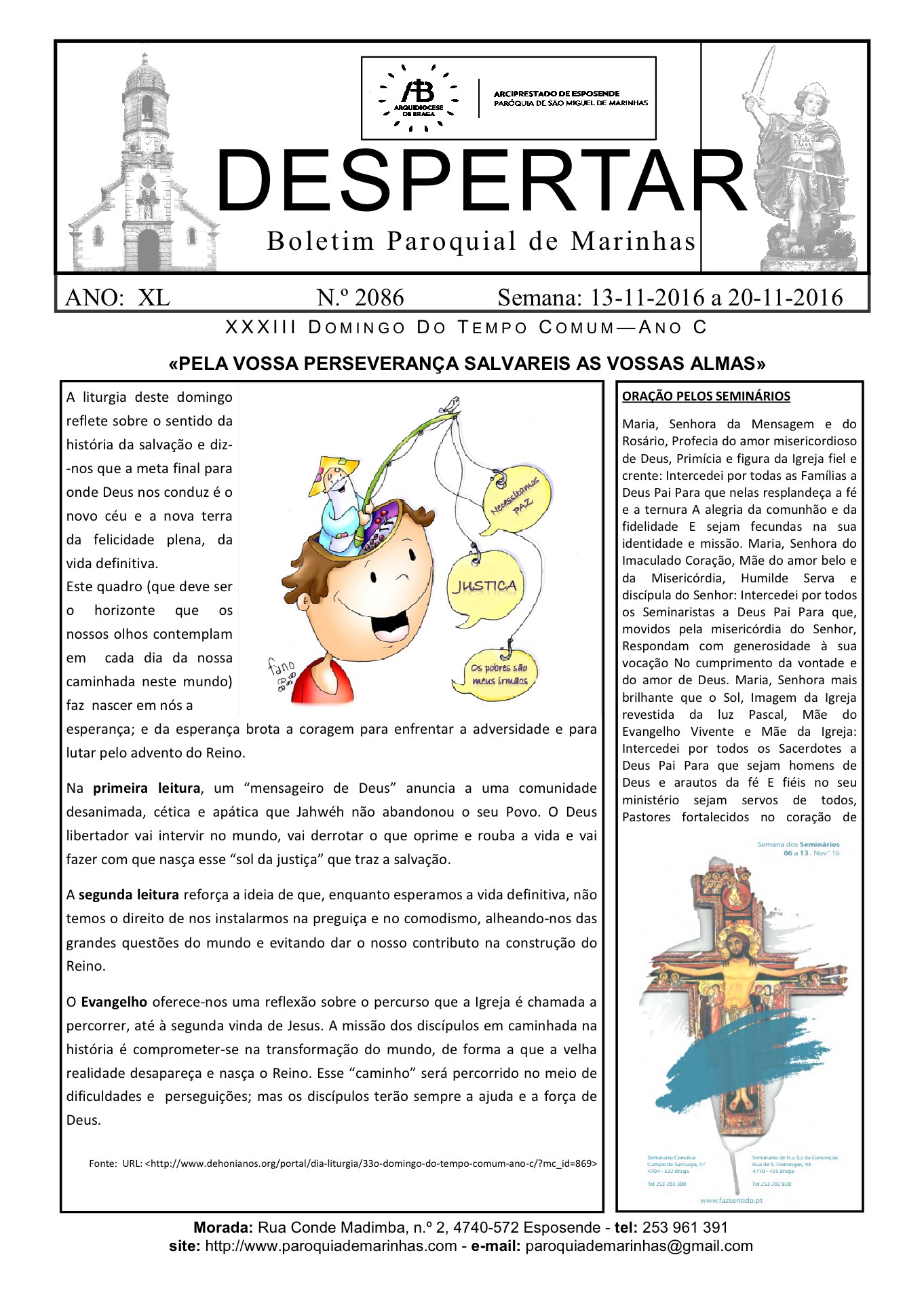 Boletim DESPERTAR 13.11.2016 a 20.11.2016