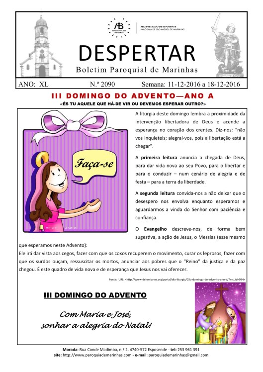 Boletim DESPERTAR 11.12.2016 a 18.12.2016