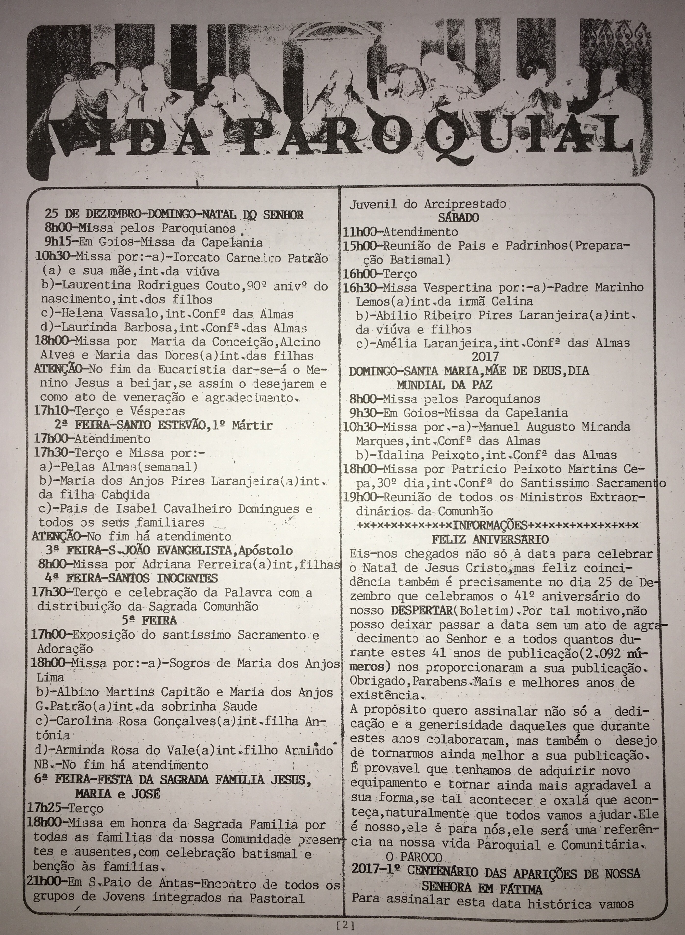 Galeria Boletim DESPERTAR 25.12.2016 a 01.01.2017 23 Sexta-feira Dez 2016 Posted by Paróquia de São Miguel de Marinhas (Esposende) in LITURGIA ≈ Comentários Desativados em Boletim DESPERTAR 25.12.2016 a 01.01.2017 Compartilhe isso: Clique para partilhar no Facebook (Abre numa nova janela) Facebook Carregue aqui para imprimir (Abre numa nova janela) Imprimir Clique para partilhar no WhatsApp (Abre numa nova janela) WhatsApp Carregue aqui para enviar por email a um amigo (Abre numa nova janela) E-mail Gosto Carregando... Relacionado