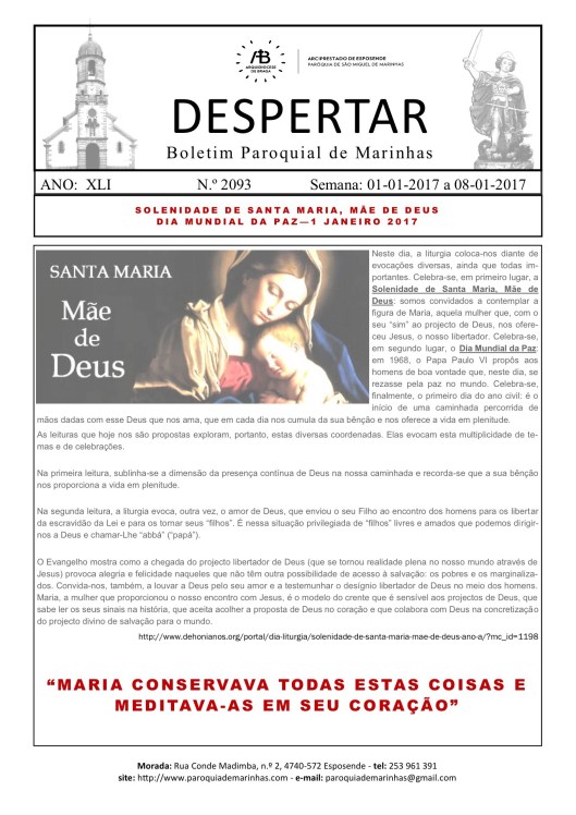 Boletim DESPERTAR 01.01.2017 a 08.01.2017