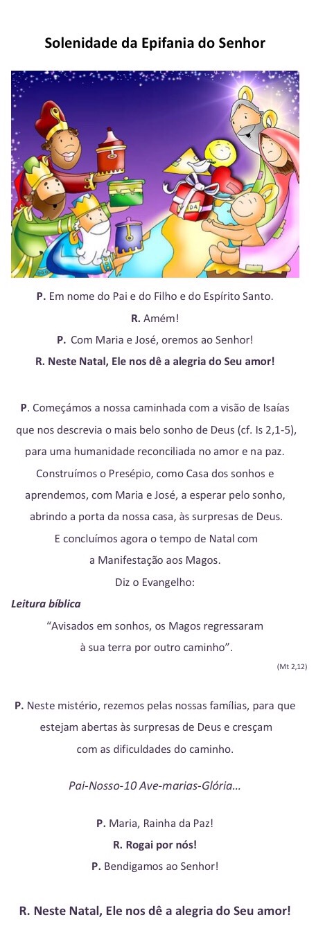 A liturgia deste domingo celebra essa manifestação de Jesus a todos os homens. Ele é uma “luz” que se acende na noite do mundo e atrai a si todos os povos da terra. Cumprindo o projeto libertador que Deus nos queria oferecer, essa “luz” incarnou na nossa história, iluminou os caminhos dos homens, conduziu-os ao encontro da salvação, da vida definitiva.