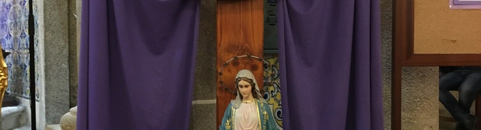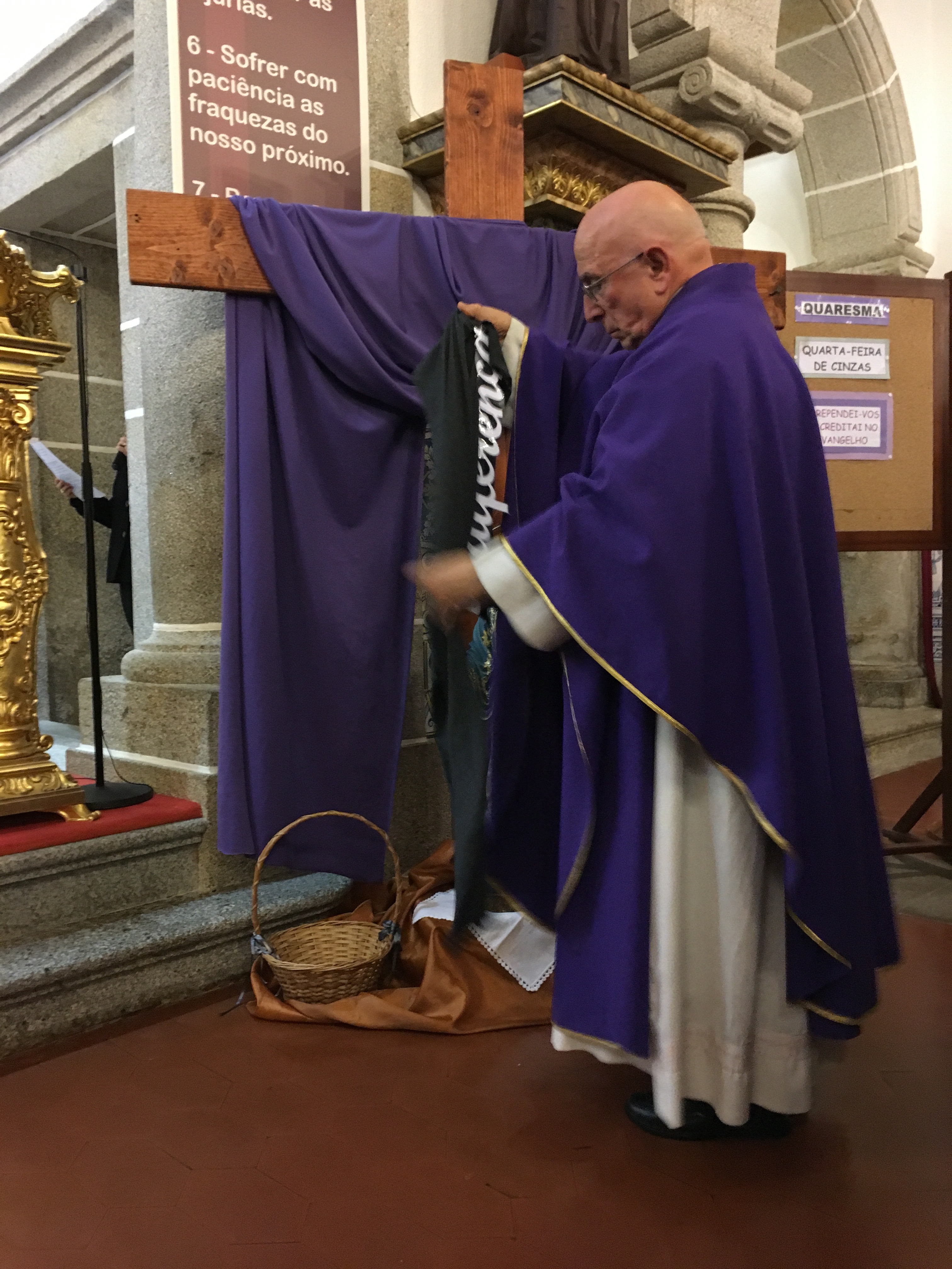 Hoje levaram um pequeno bilhete para registar o compromisso desta semana. Deverão trazê-lo no próximo domingo para colocar junto da Cruz e da imagem de Nossa Senhora que será a nossa medianeira, nosso amparo e guia durante esta Quaresma.