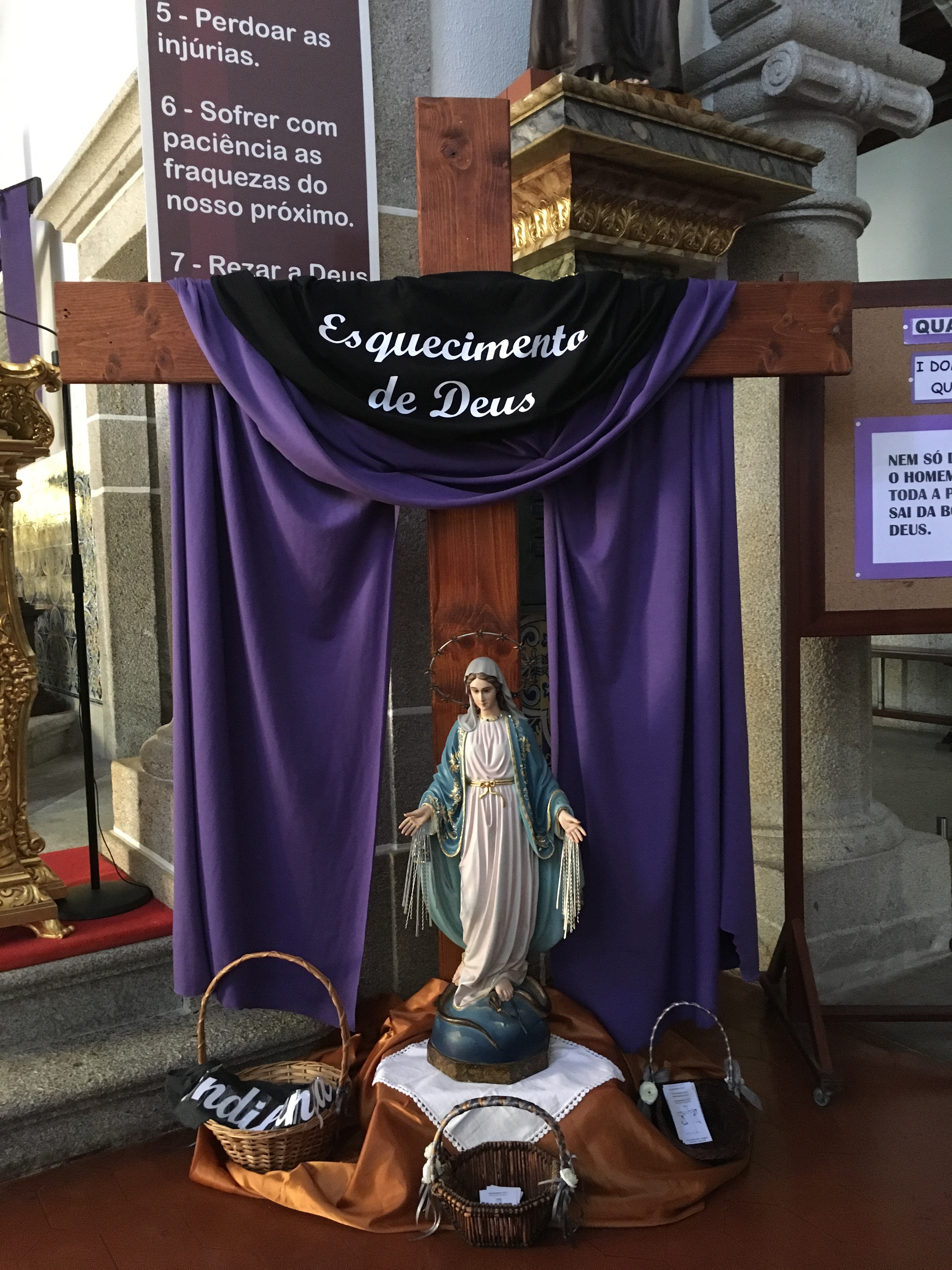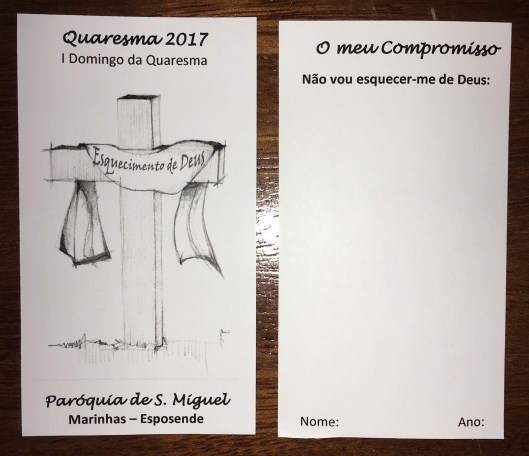 Na Quarta-Feira de Cinzas demos início à nossa caminhada da Quaresma e fomos desafiados a a não ficarmos indiferentes. Todos aqueles que levaram consigo um cartão para escrever o seu compromisso podem colocá-lo junto da Cruz e da imagem de Nossa Senhora, oferecendo assim ao Senhor e com a proteção de Sua Mãe o seu propósito de não ficar indiferente.