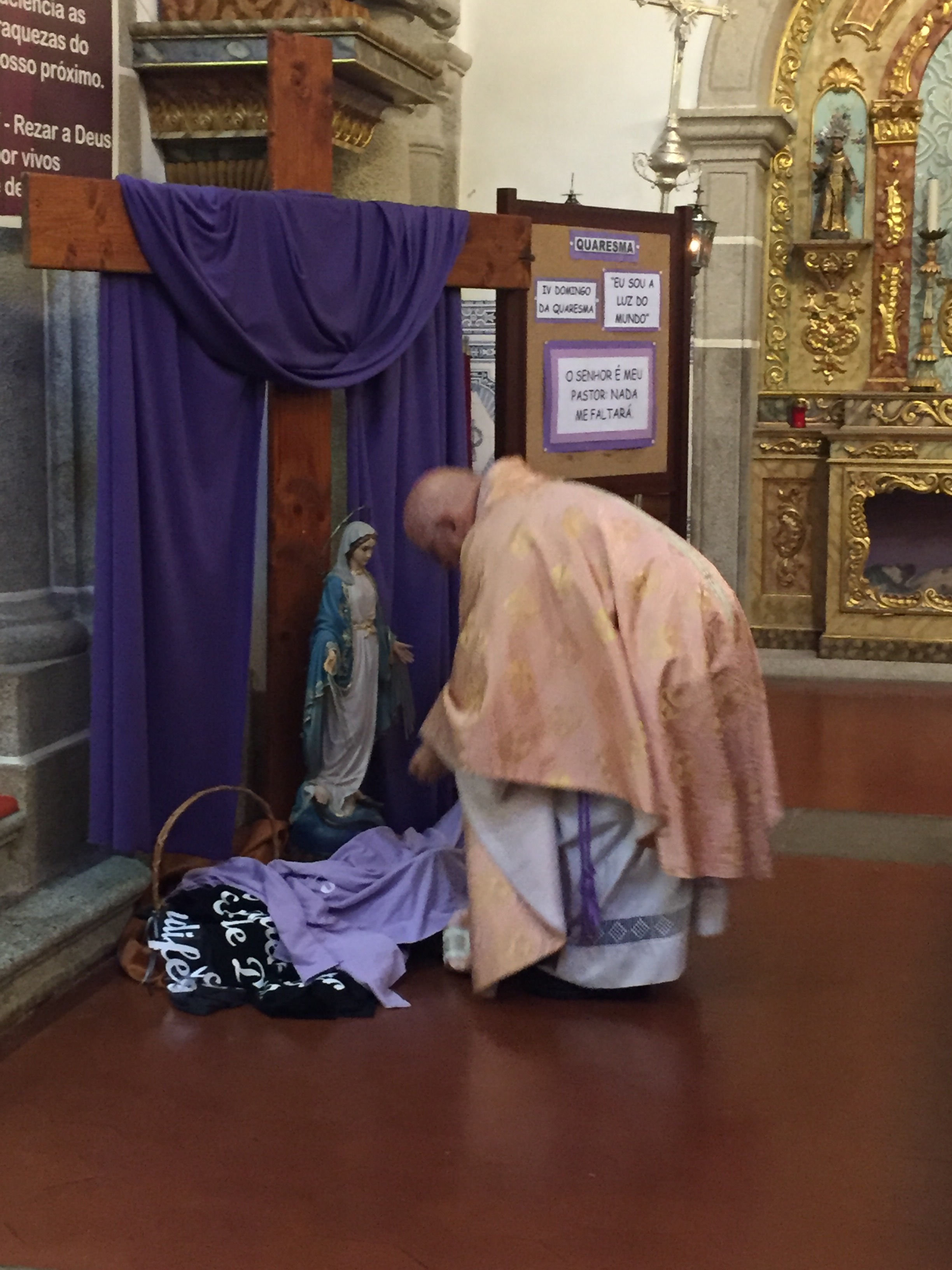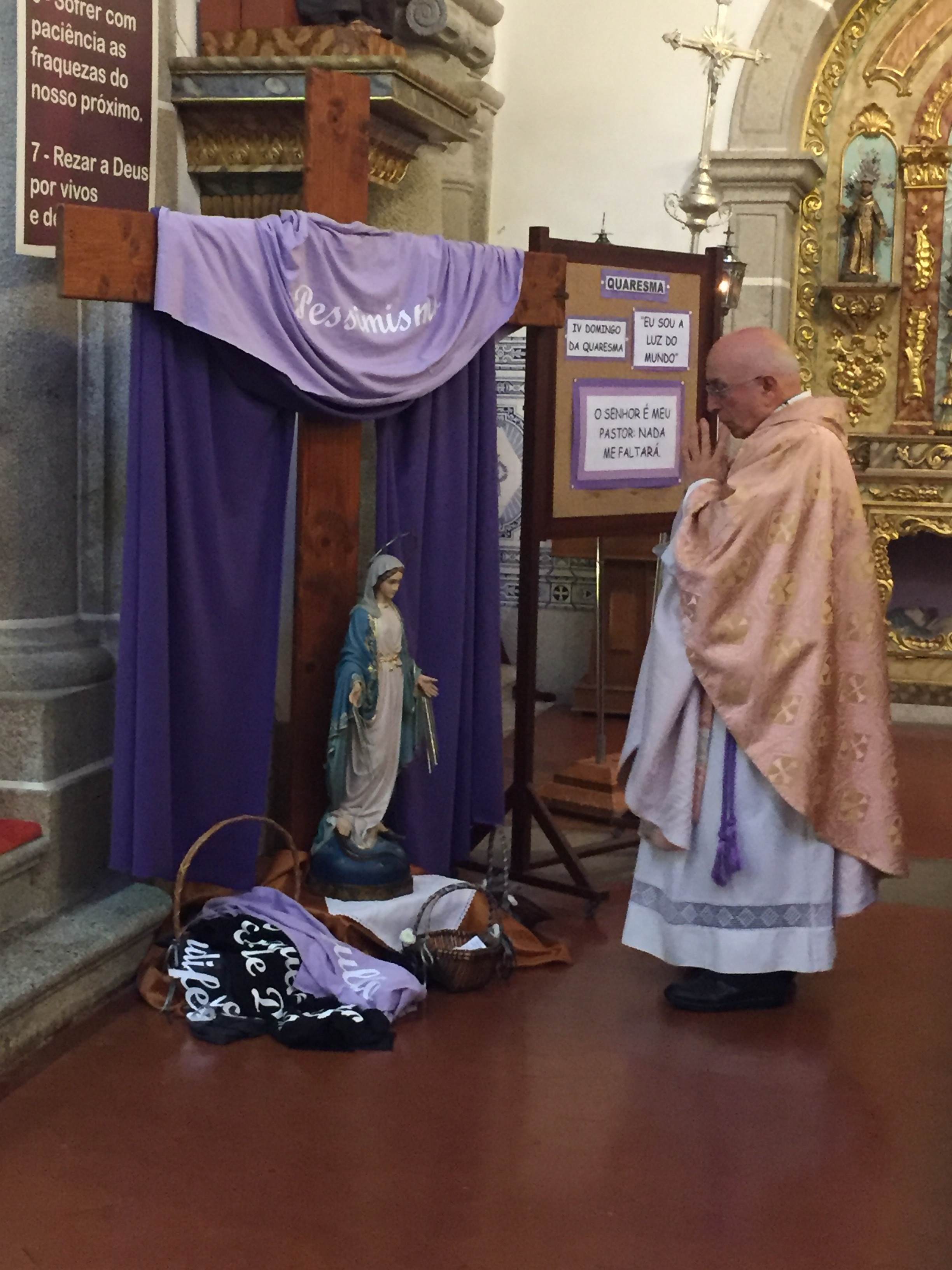 Na semana passada, fomos desafiados a colocar de parte o nosso orgulho e reconhecer que diante de Deus somos pequeninos. Todos aqueles que levaram consigo um cartão para escrever o seu compromisso podem, enquanto cantamos o cântico do ofertório colocá-lo junto da Cruz e da imagem de Nossa Senhora, oferecendo assim ao Senhor e com a proteção de Sua Mãe, o seu propósito nesta caminhada quaresmal.