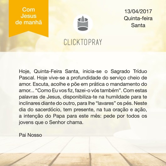 Galeria QUINTA-FEIRA SANTA 13 Quinta-feira Abr 2017 Posted by Paróquia de São Miguel de Marinhas (Esposende) in LITURGIA ≈ Comentários Desativados em QUINTA-FEIRA SANTA Compartilhe isso: Partilhar no Facebook (Abre numa nova janela) Facebook Imprimir (Abre numa nova janela) Imprimir Share on WhatsApp (Abre numa nova janela) WhatsApp Email a link to a friend (Abre numa nova janela) E-mail Gosto Carregando... Relacionado