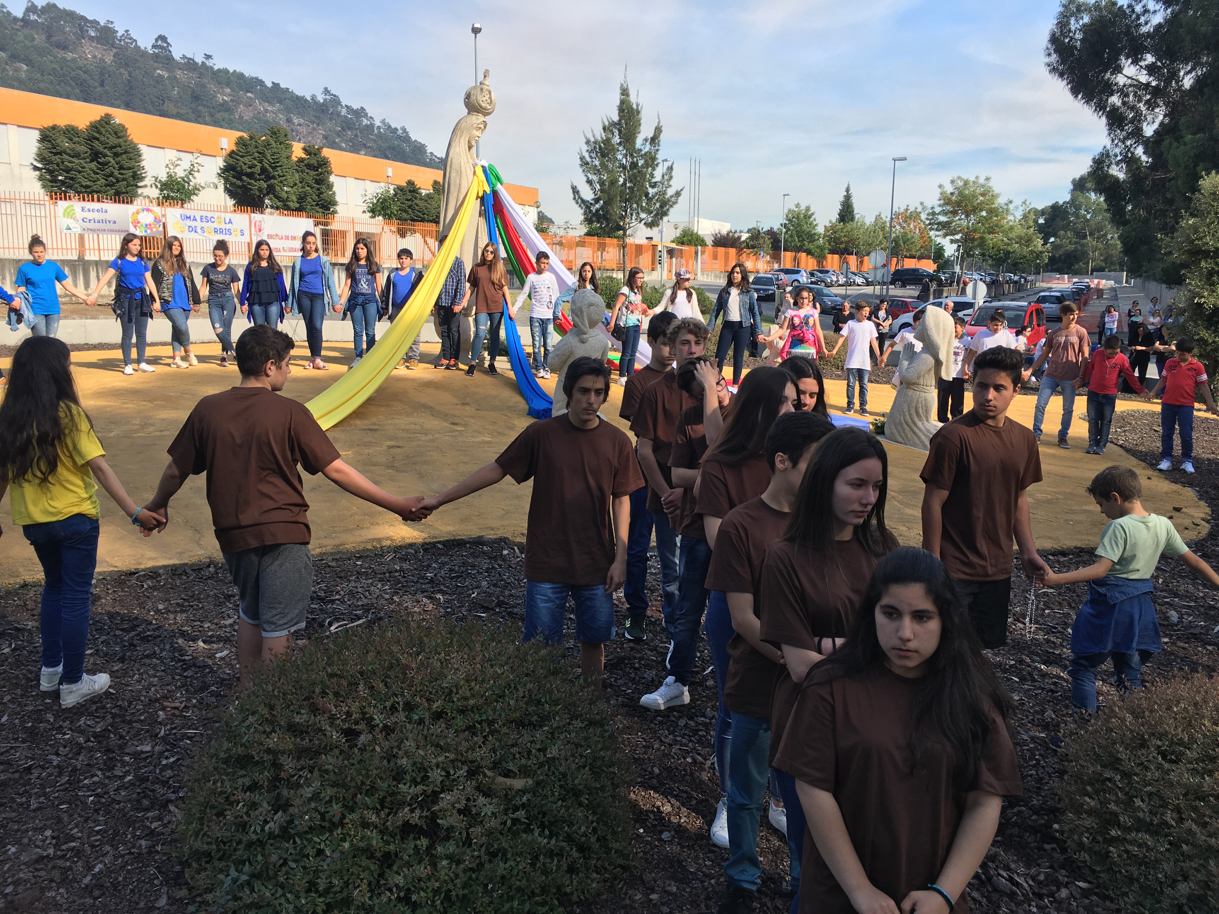 Assim, neste mês de maio, em pleno período pós Pascal e vivendo a alegria da Ressurreição e da vinda do Espírito Santo, quisemos, todos nós – Sr. Reitor, catequese, catequistas, pais/encarregados de educação e restantes membros da nossa comunidade – junto de Nossa Senhora e dos Pastorinhos, rezar a mais bela das orações, o terço.
