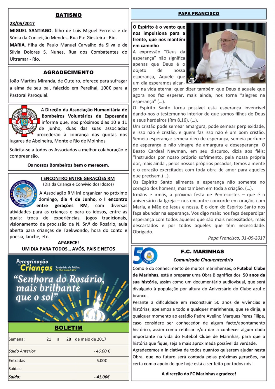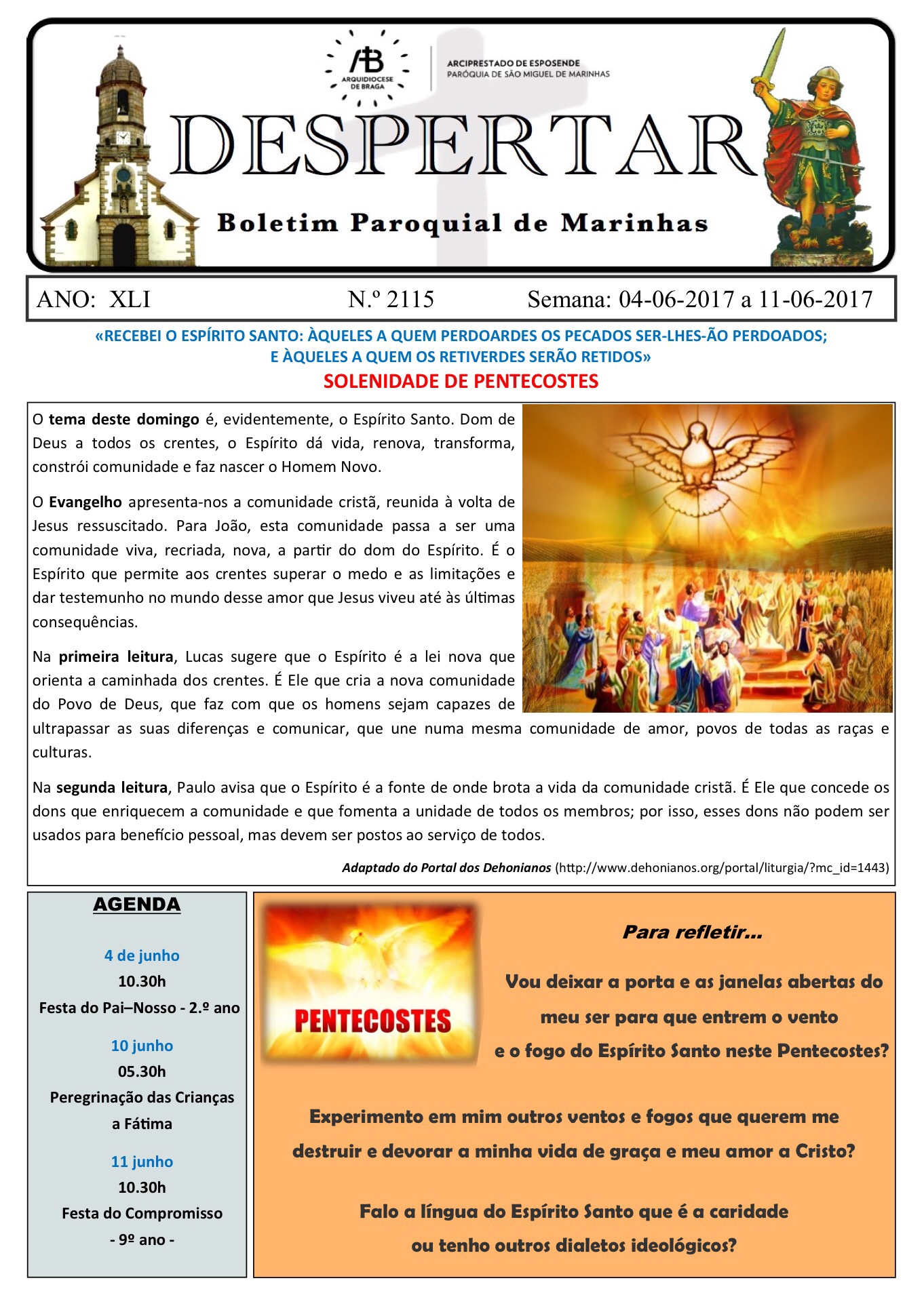 Boletim DESPERTAR n.° 2115 de 04.06.2017 a 11.06.2017