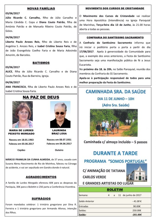 Boletim DESPERTAR n.° 2116 de 11.06.2017 a 18.06.2017