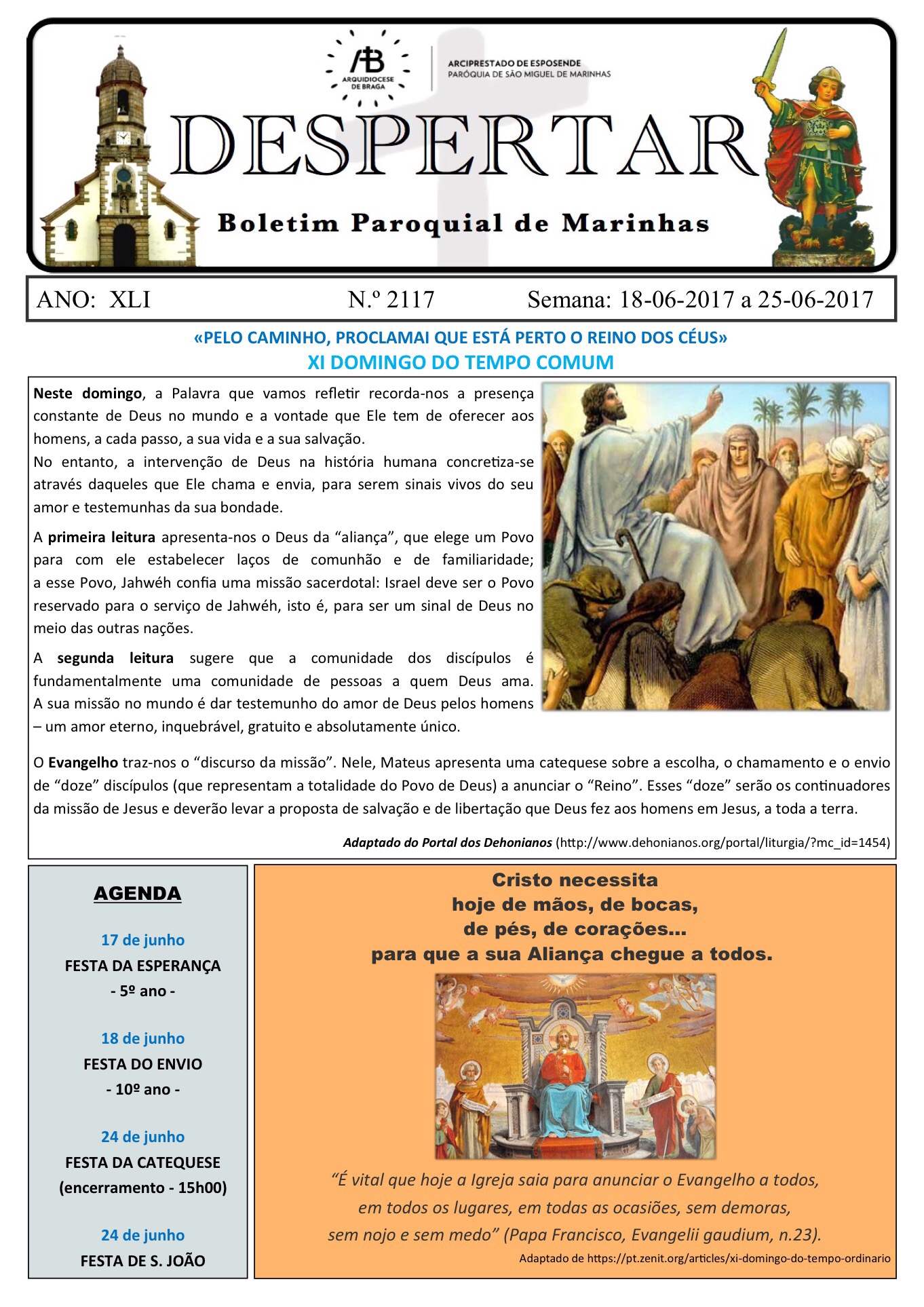 Boletim DESPERTAR n.º 2117 de 18.06.2017 a 25.06.2017