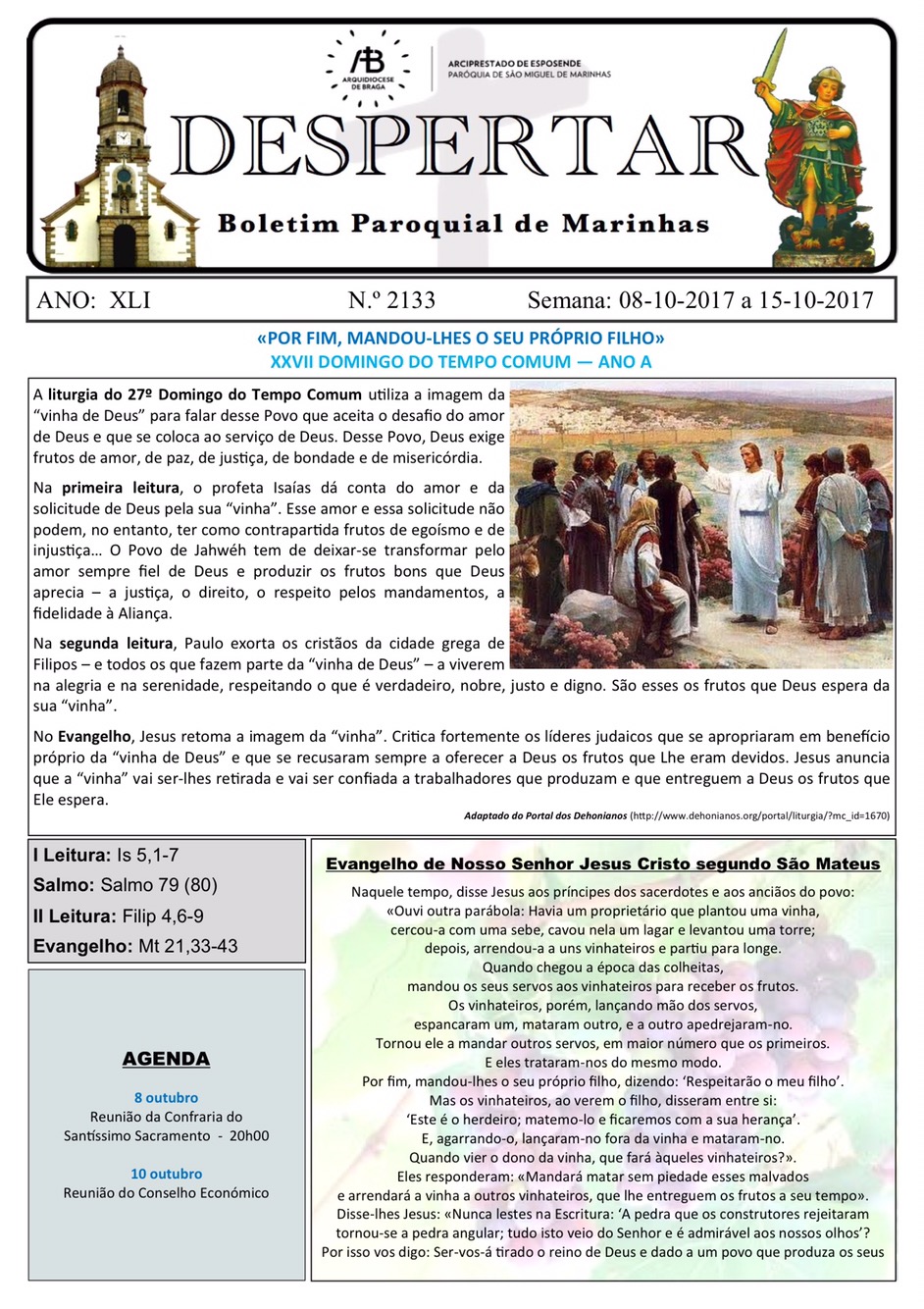 Boletim DESPERTAR n.º 2133 de 08.10.2017 a 15.10.2017