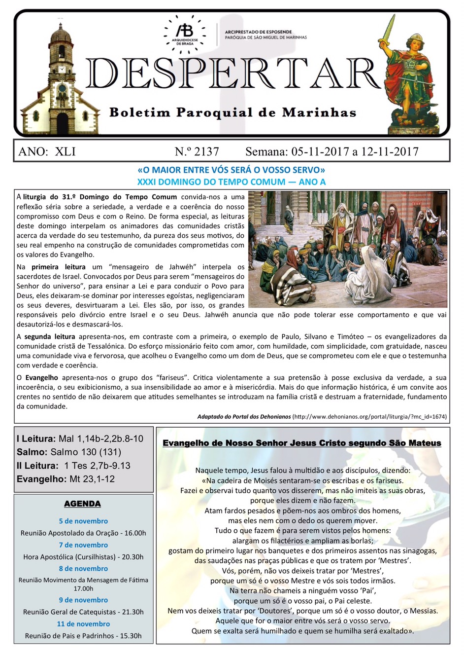Boletim Despertar n.º 2137 de 05.11.2017 a 12.11.2017