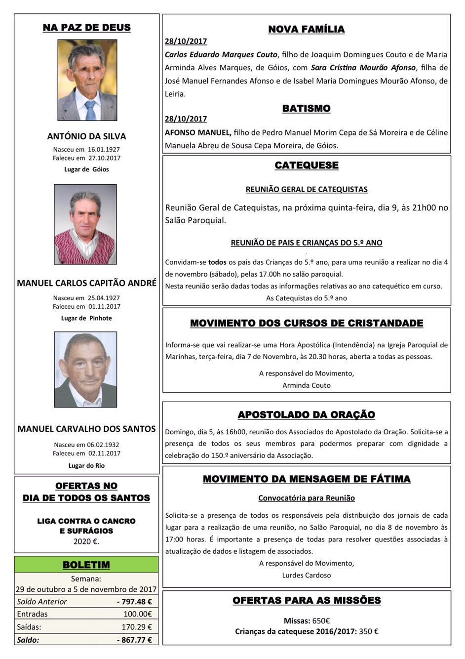 ≈ Comentários Desativados em Boletim Despertar n.º 2137 de 05.11.2017 a 12.11.2017