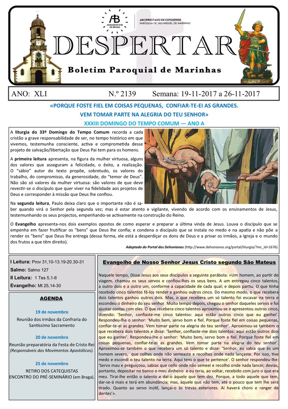 Boletim DESPERTAR n.º 2139 de 19.11.2017 a 26.11.2017