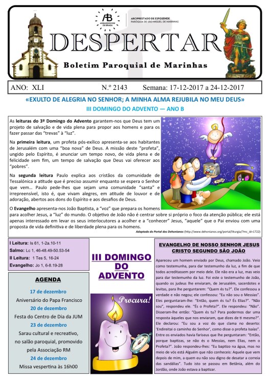 Boletim Despertar n.º 2143 de 17.12.2017 a 24.12.2017