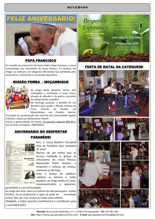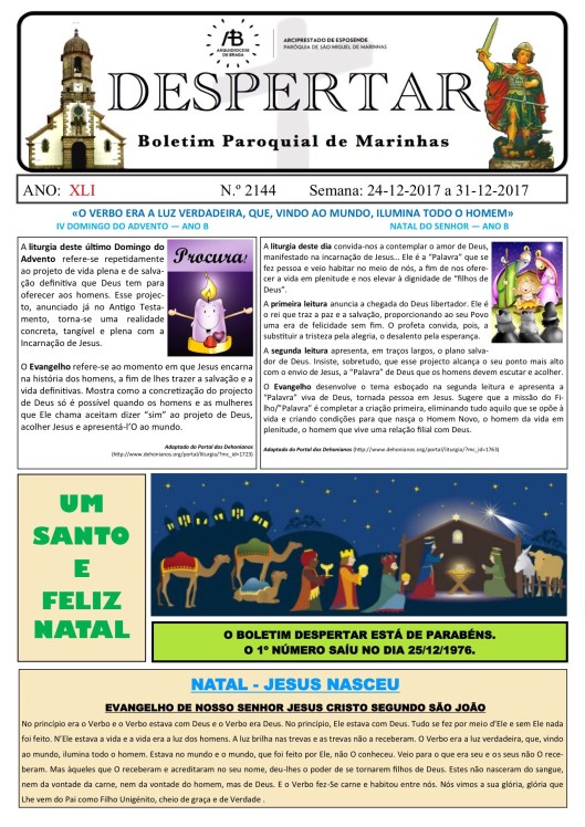 Boletim DESPERTAR n.° 2144 de 24.12.2017 a 31.12.2017