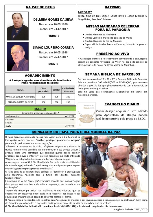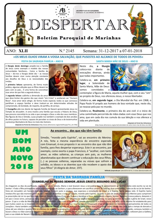 Boletim DESPERTAR n.º 2145 de 31.12.2017 a 07.01.2018