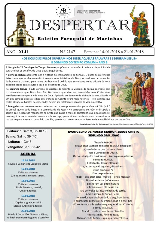 ≈ Comentários Desativados em Boletim DESPERTAR n.º 2147 de 14.01.2018 a 21.01.2018