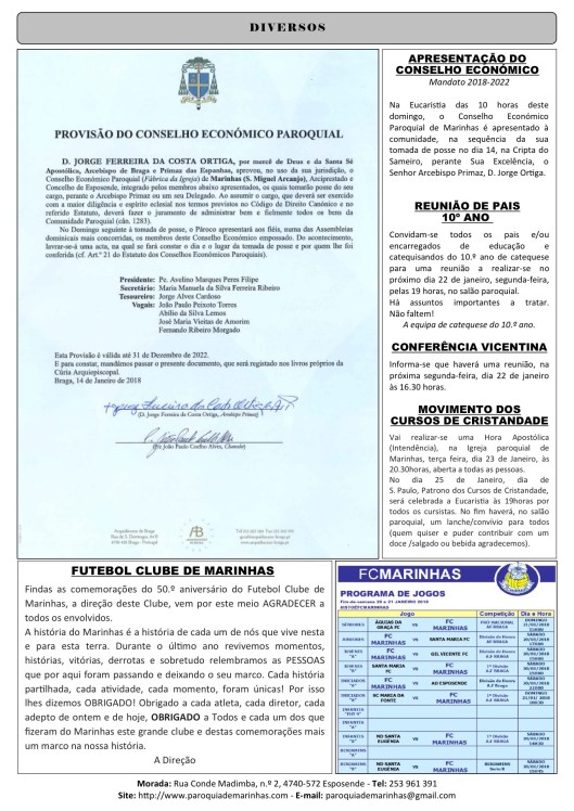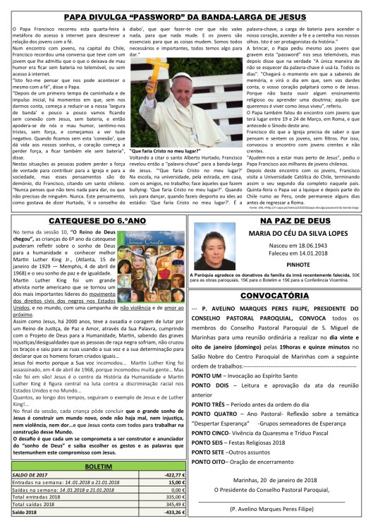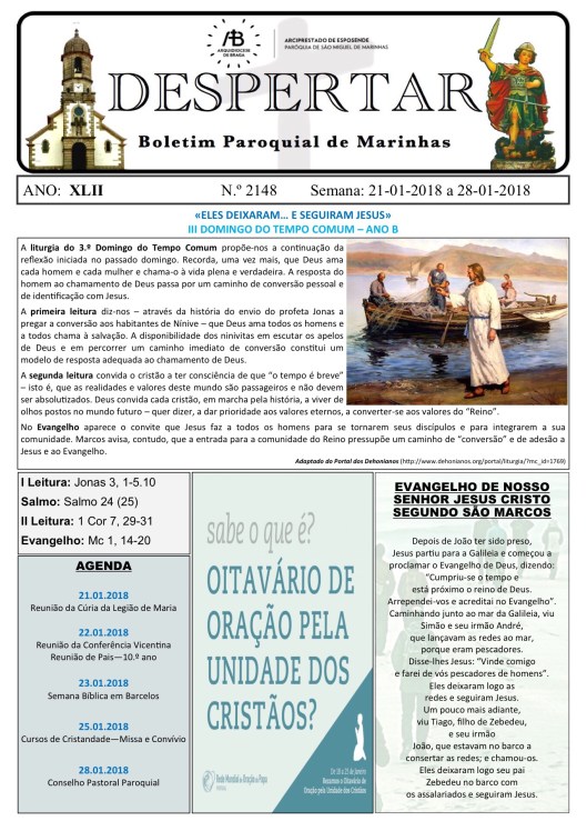 Boletim DESPERTAR n.º 2148 de 21.01.2018 a 28.01.2018