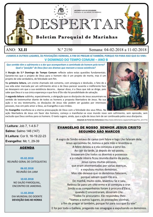 Boletim DESPERTAR n.º 2150 de 04.02.2018 a 11.02.2018