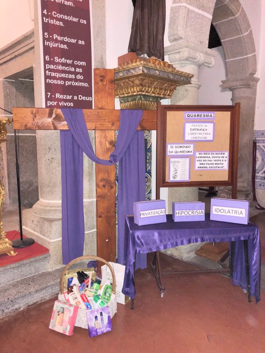 Hoje, vimos colocar junto da cruz do Senhor estes produtos de higiene pessoal para que, depois de abençoados, sejam entregues no CISE e distribuídos, pela ACR, aos Sem-abrigo do Porto.