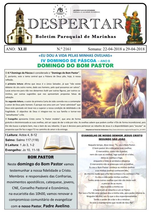 Boletim DESPERTAR n.º 2161 de 22.04.2018 a 29.04.2018