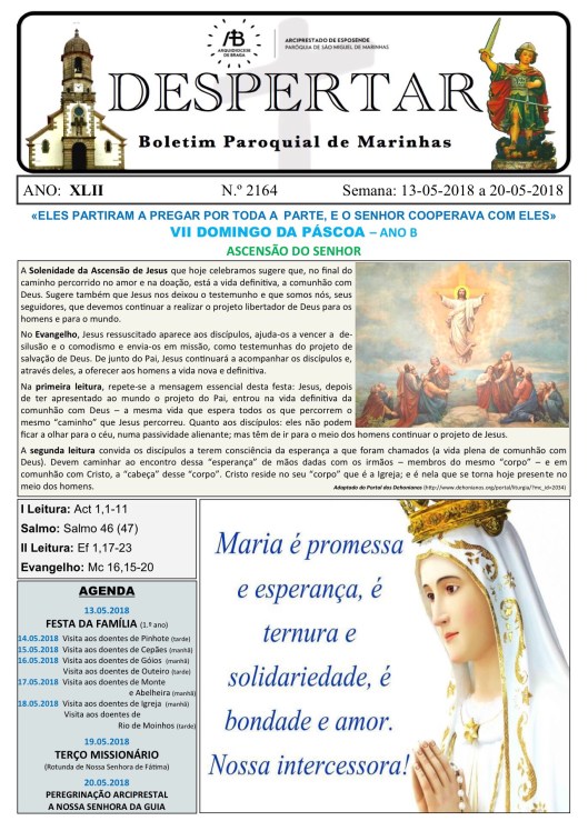 Boletim DESPERTAR n.º 2164 de 13.05.2018 a 20.05.2018