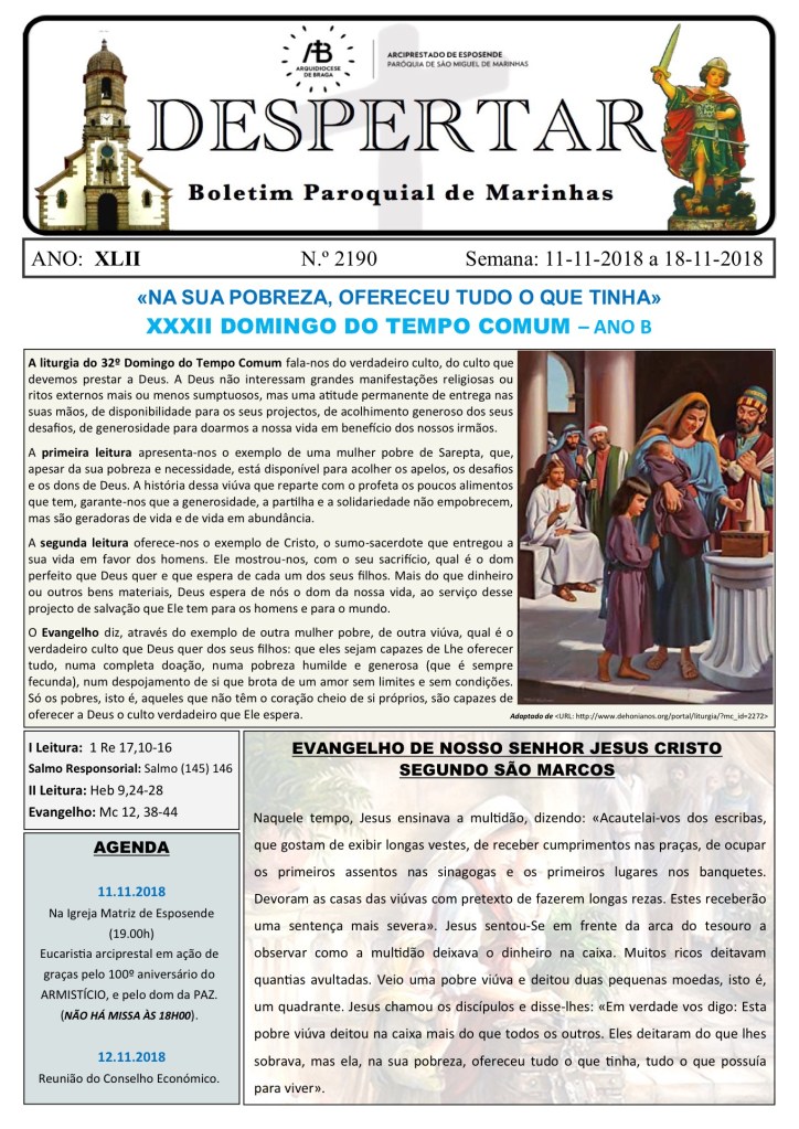 Boletim DESPERTAR n.º 2190 de 11.11.2018 a 18.11.2018 09 Sexta-feira Nov 2018 Original size at 1362 × 1926 ≈ Comentários Desativados em 850F32E9-77B2-4457-93D4-E728A6FFA594