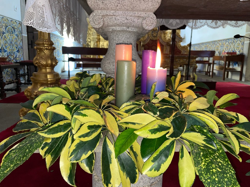 Uma vela arde como sinal da nossa esperança. Deus da esperança, vem ter connosco neste Advento. Que a tua esperança habite em nós e brilhe como esta vela nas nossas vidas. Amen.