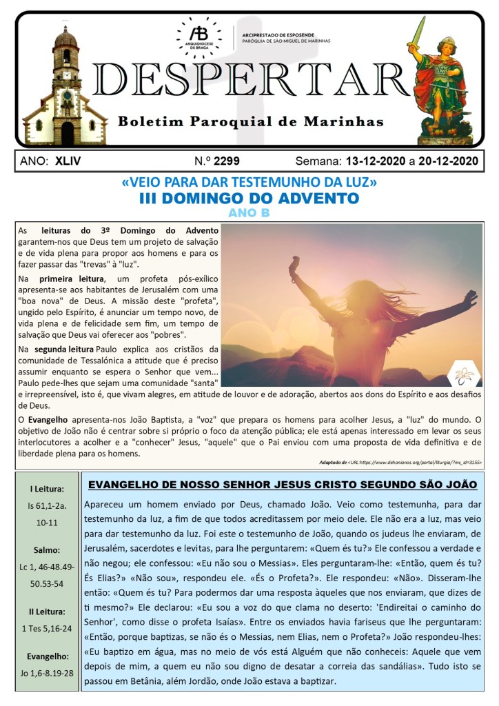 ≈ Comentários Desativados em Boletim Despertar n.º 2299 de 13.12.2020 a 20.12.2020
