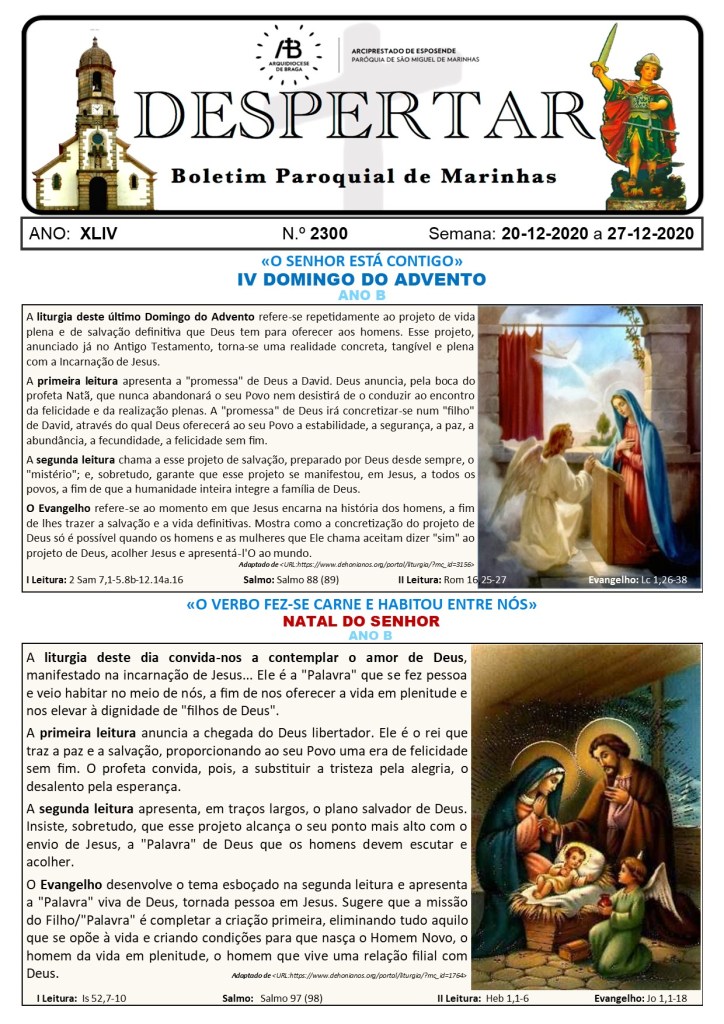 ≈ Comentários Desativados em Boletim Despertar n.º 2300 de 20.12.2020 a 27.12.2020