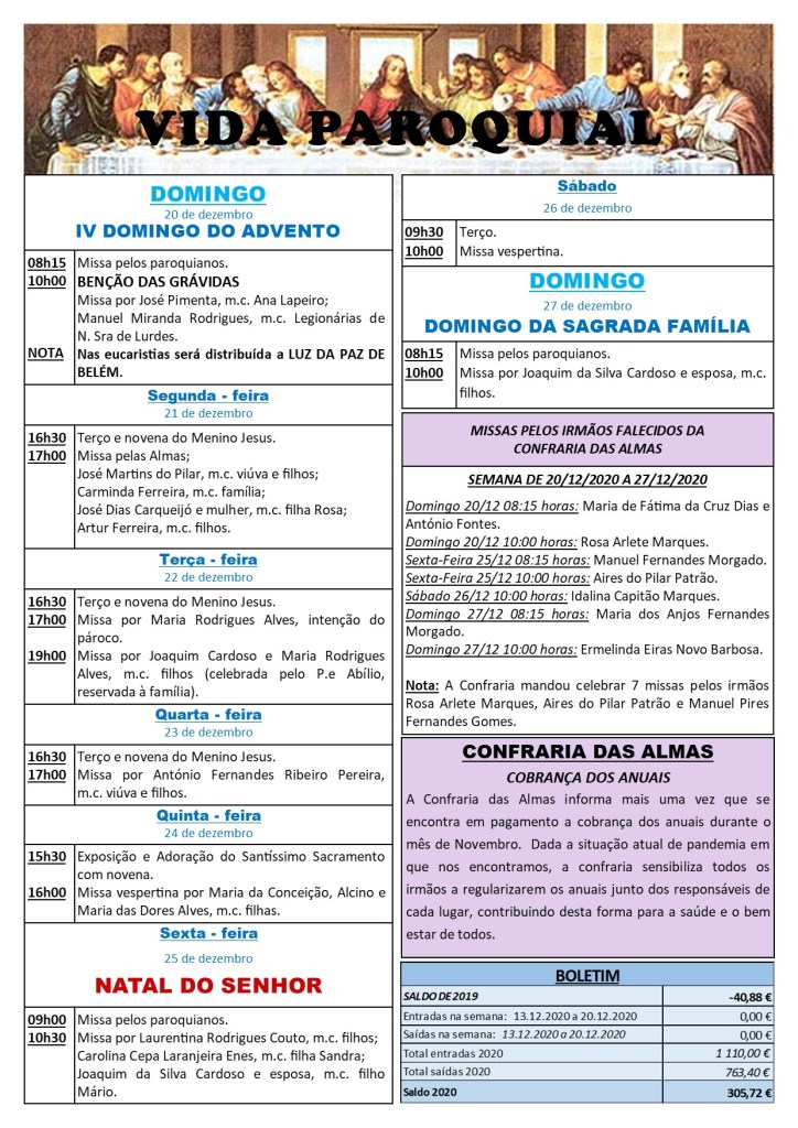 Boletim Despertar n.º 2300 de 20.12.2020 a 27.12.2020