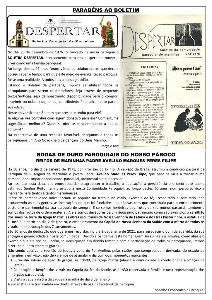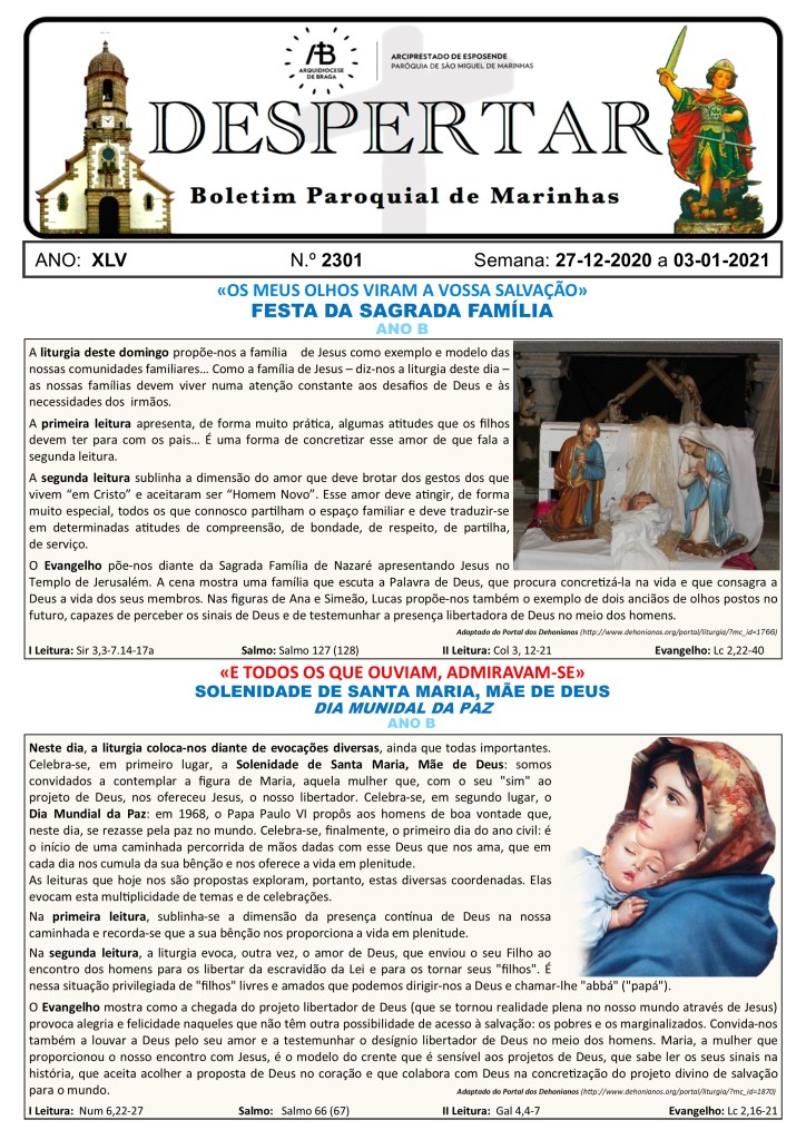 Boletim Despertar n.º 2301 de 27.12.2020 a 03.01.2021