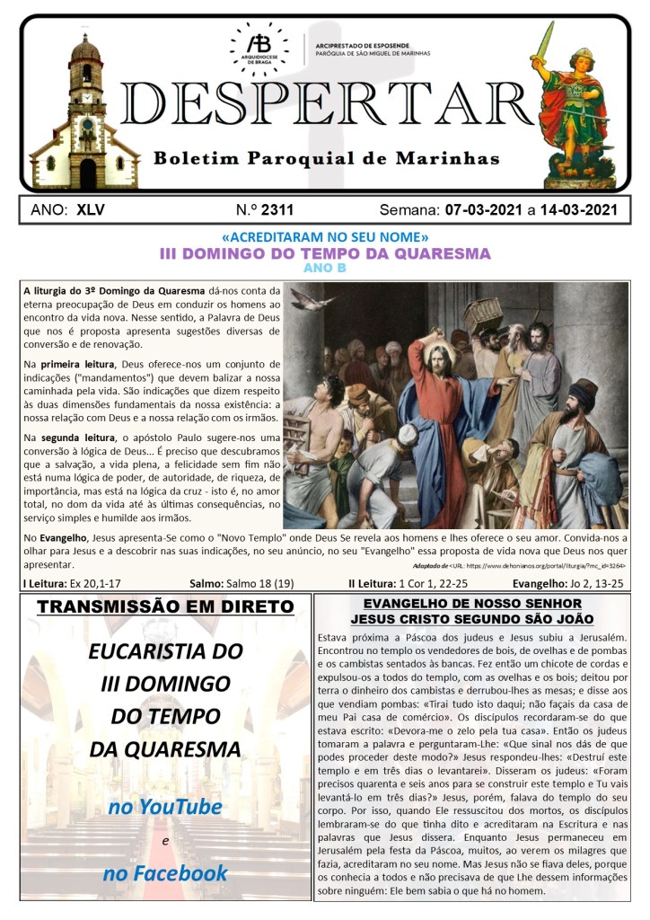 ≈ Comentários Desativados em Boletim Despertar n.º 2311 de 07.03.2021 a 14.03.2021